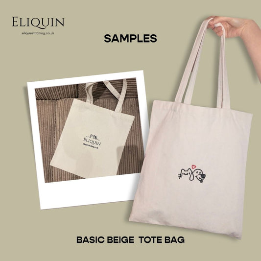 Personalised Embroidery 100% Natural Cotton Tote Bag (Line Sketching + Text)